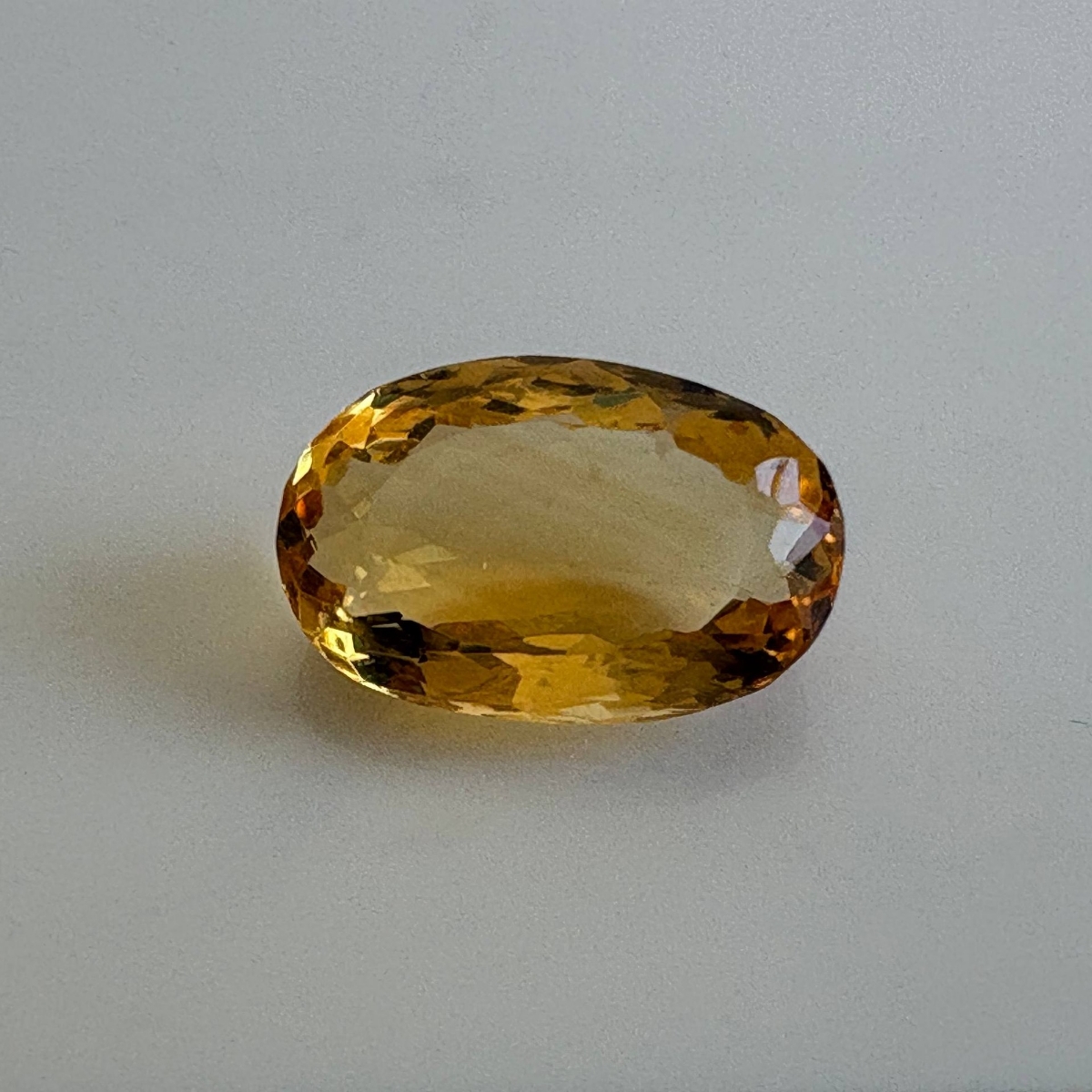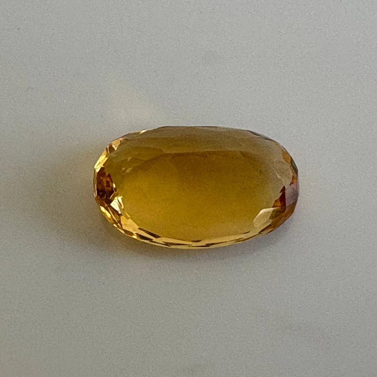 Citrine from Brazil, weighing 9.22 cts, cut in an Oval shape, glowing in Shades of Yellow Tones. Its bright and cheerful appearance gives it a lively and uplifting look that feels positive and welcoming.